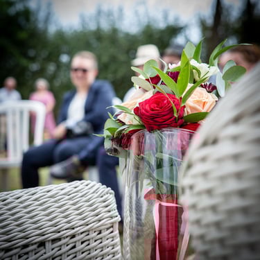 Reportage photos de la ou les cérémonies ainsi que des photos de couple et de groupes juste après, et le reportage du vin d'honneur. J'en profite aussi pour faire quelques photos de votre déco!