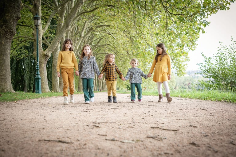 Vous pouvez assortir les couleurs, les motifs sans pour autant être tous habillés exactement pareil et le rendu sera vraiment sympa!